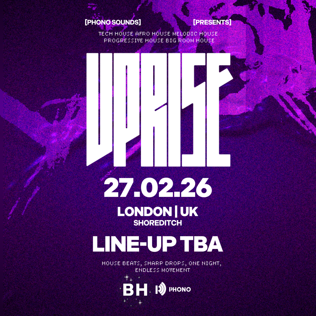 PHONO SOUNDS EVENTS All Upcoming Past All Upcoming Past 24 JULY 2025 CLUB UPRISE LONDON IZZY TRIXX, LAWZ B LDN Buy Ticket 27 FEB 2026 CLUB UPRISE LONDON IZZY TRIXX, LAWZ B LDN SIGN UP 25 SEP 2025 CLUB UPRISE LONDON LINE-UP TBA B LDN Sign up 30 OCT 2025 CLUB UPRISE LONDON LINE-UP TBA B LDN Sign up